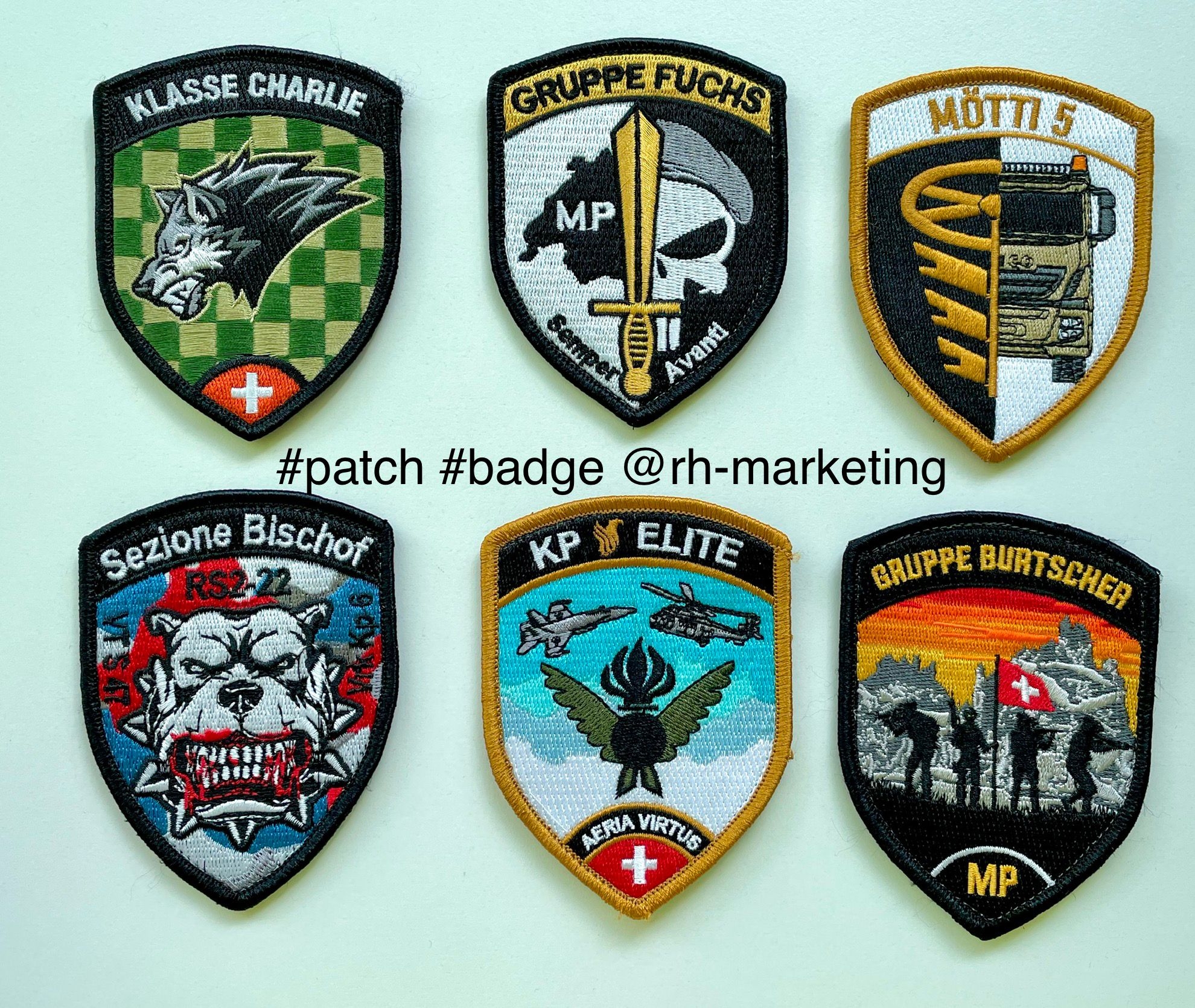 gestickte Patches/Abzeichen ab 10 Stück CHF 27.00/ Stück |