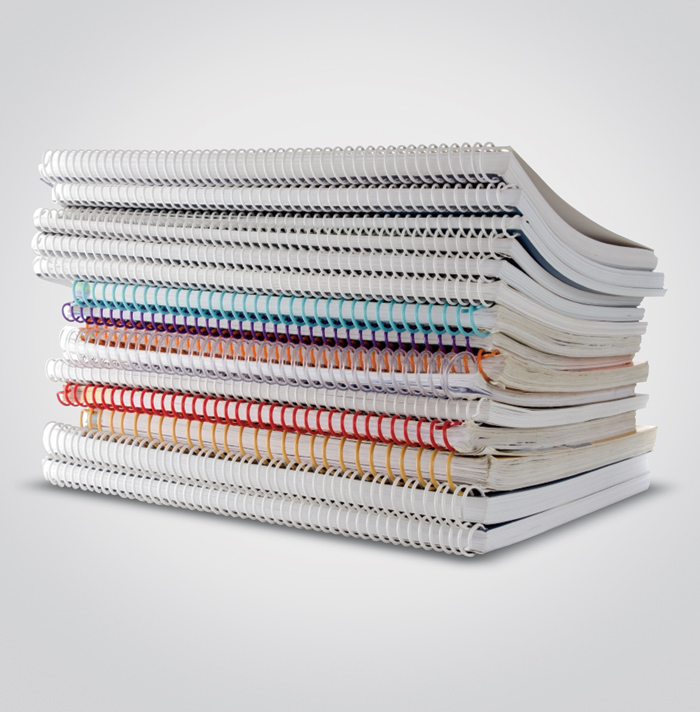 Hierbei handelt es sich um eine preisgünstige aber dennoch stabile Bindeart. Je nach Blattanzahl kommen unterschiedliche Spiraldurchmesser zum Einsatz. Somit wird ein bestmögliches Umblättern ermöglicht.