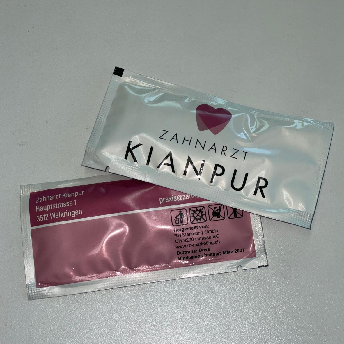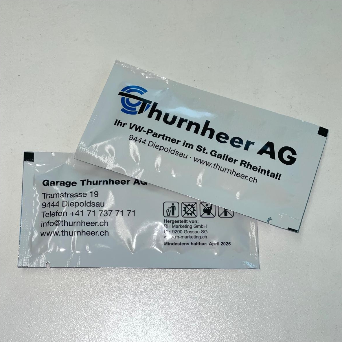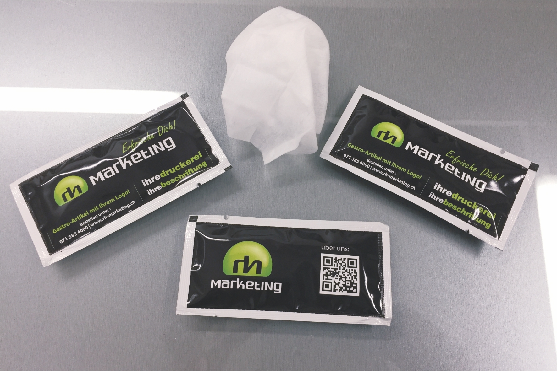 Wir bedrucken ihnen Erfrischungstücher / Feuchttücher mit Ihrem Logo. Hygienisch sauber und sanft auch zu empfindlicher Haut: Erfrischungstücher einzeln verpackt sind überall willkommen und vielseitig einsetzbar. Bedruckt mit Ihrem Logo bleiben die praktischen Frischetücher Ihren Kunden in angenehm sauberer Erinnerung.
