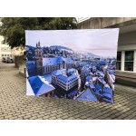 Unser Frontlit-Banner ein flexibles, weiches Qualitätsbannermaterial mit hervorragenden thermischen Schweisseigenschaften und einer hohen Druckqualität. Das Produkt kann für Innen- und Aussenanwendungen wie Werbeflächen auf Messen und Events, bei Baustellen, Showrooms, Werbekampagnen und für viele andere Anwendungen eingesetzt werden. Unser Material bietet eine hohe Druckqualität mit einer bemerkenswerten Textdefinition sowie einem grossen Farbspektrum, um photorealistische Bilder und eine kompakte Flächenfüllung zu ermöglichen. Durch Thermo-schweissen entstehen sehr robuste Säume und Nähte.
