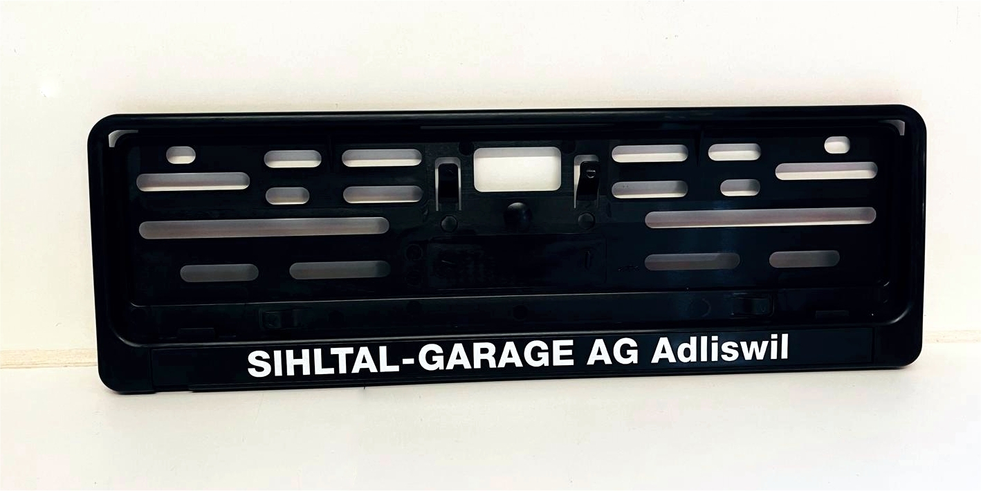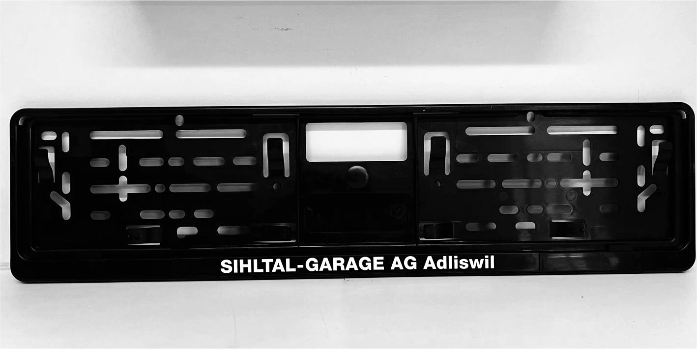 Wir bieten wir Ihnen die Kennzeichenhalter für vorne und für hinten der Schweizer Kennzeichenhalter mit Ihrem Werbeaufdruck an.