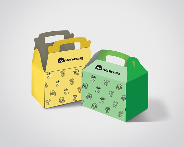 Schachteln als Lunchbox / Foodbox mit Tragegriff mit Ihrem Logo bedrucken